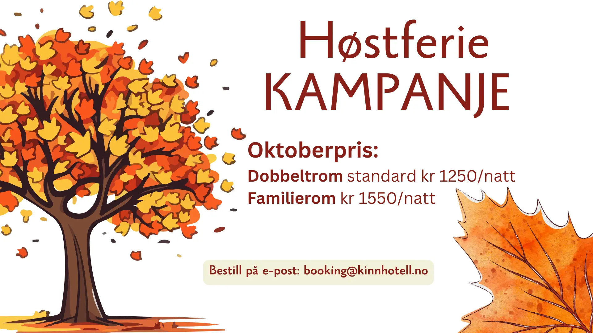 Bestill per e-post: booking@kinnhotell.no