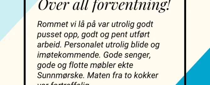 Dette sier kundene Gallery Dette sier kundene Kampanje Dette sier kundene Vi på Kinn Hotell tilbyr ekstra gode priser i [...] By Anita|2025-10-28T13:42:32+01:0015/10/2025|Kampanje|Kommentarer er skrudd av for Dette sier kundene Read More
