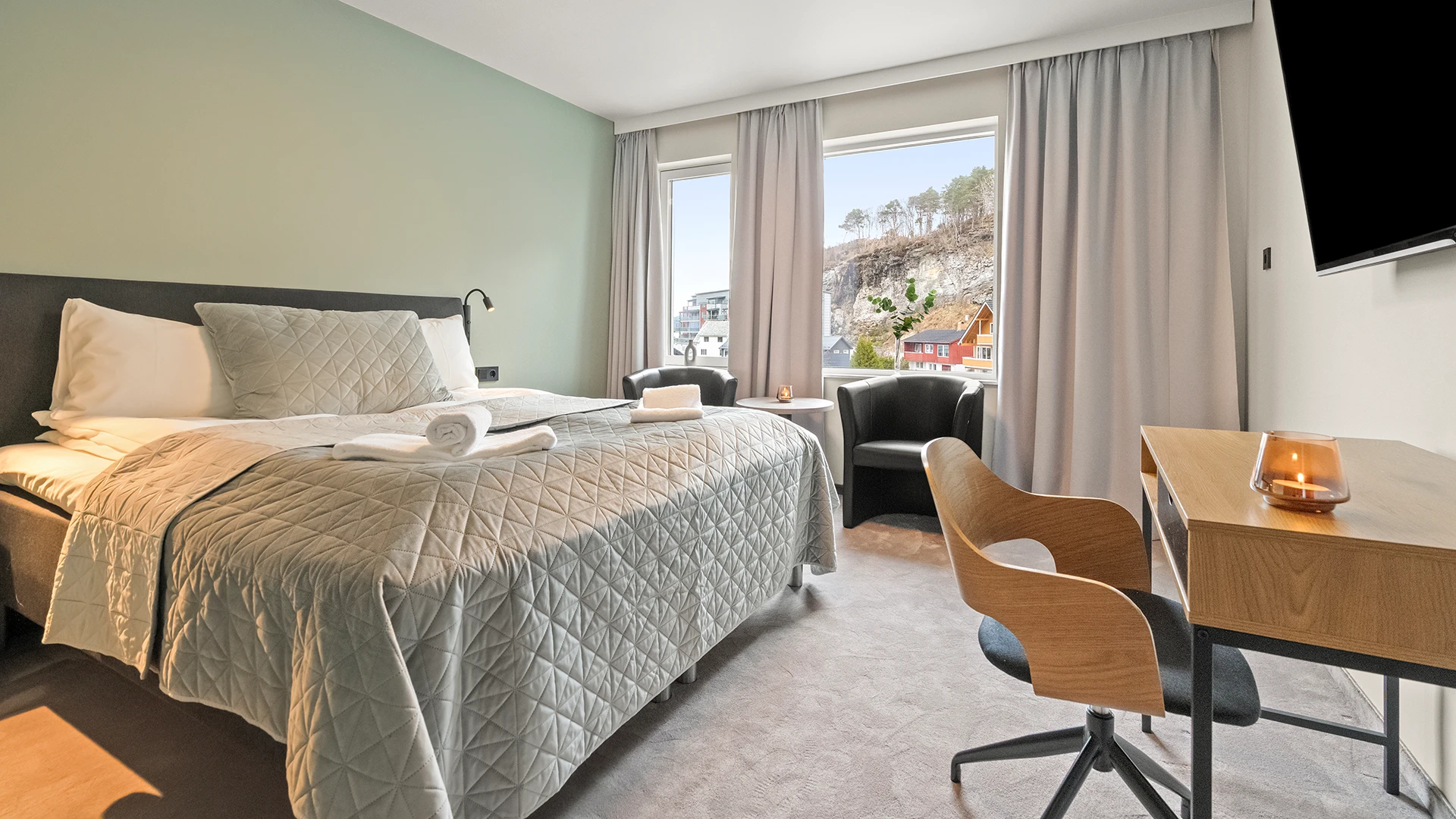 Kinn Hotell ligger i Havrenesvegen 32 B i Florø, og er 5 minutt fra sentrum, flyplass og terminal for båt og buss.